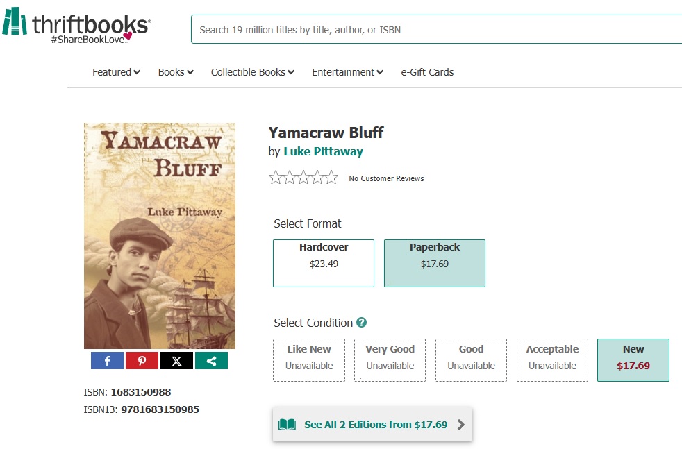 Yamacraw Bluff is available from Amazon: https://www.amazon.com/Yamacraw-Bluff-Luke-Pittaway/dp/1683150988